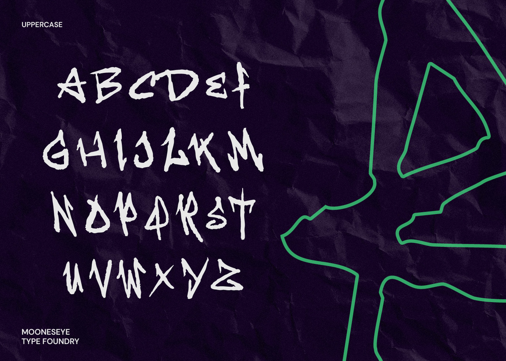 Stop blending in. Aechon is your shortcut to an authentic, hand-drawn graffiti style, perfect for projects that need to look gritty, loud, and non-conformist. The letters feature a jagged, distressed texture that screams urban culture, hip-hop, punk, and alternative music.