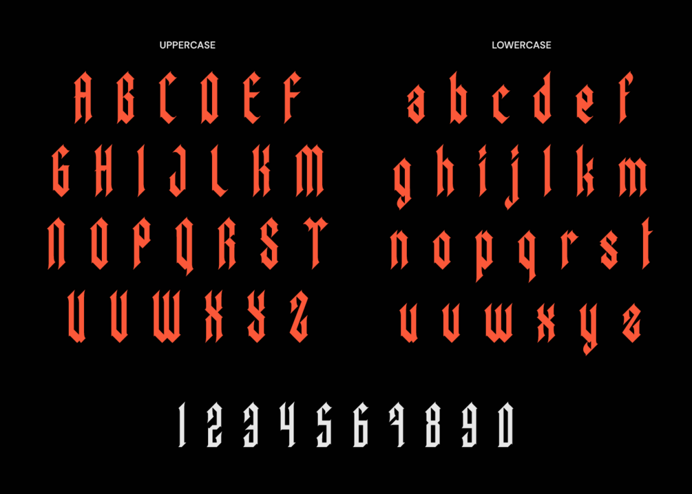 Baeiros is a powerful modern blackletter font designed to make an unforgettable statement. It takes the classic, gothic style and gives it a clean, geometric update, making it perfect for today’s boldest designs.
