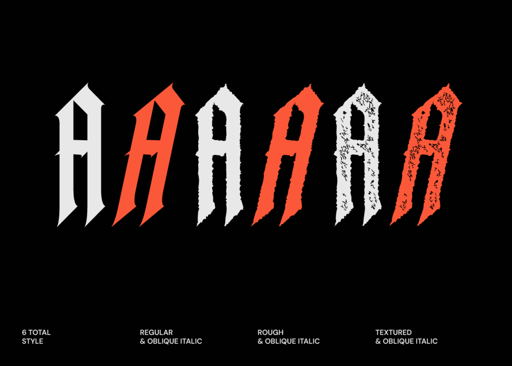 • 6 Styles Included: Regular, Rough, and Textured with oblique italics.